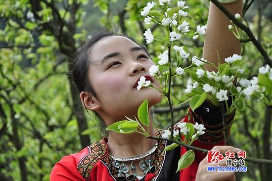 紅網(wǎng)綏寧縣分站4月9日訊(分站記者 黃生勇)4月8日,湖南省綏寧縣城300多名游客相約寨市茶沖村郭沖梨花園,在這里與苗家阿妹一起賞梨花游覽鄉村春景,吃花豬肉品正宗農家風(fēng)味。